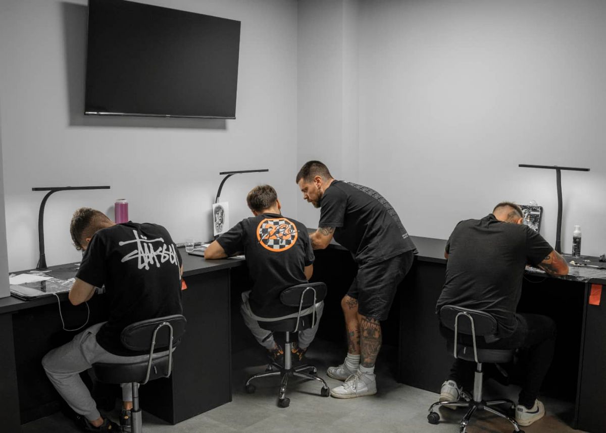 You can book your tattoo appointment by visiting our studio in person or using our online booking system on our website. A deposit may be required to secure your appointment.